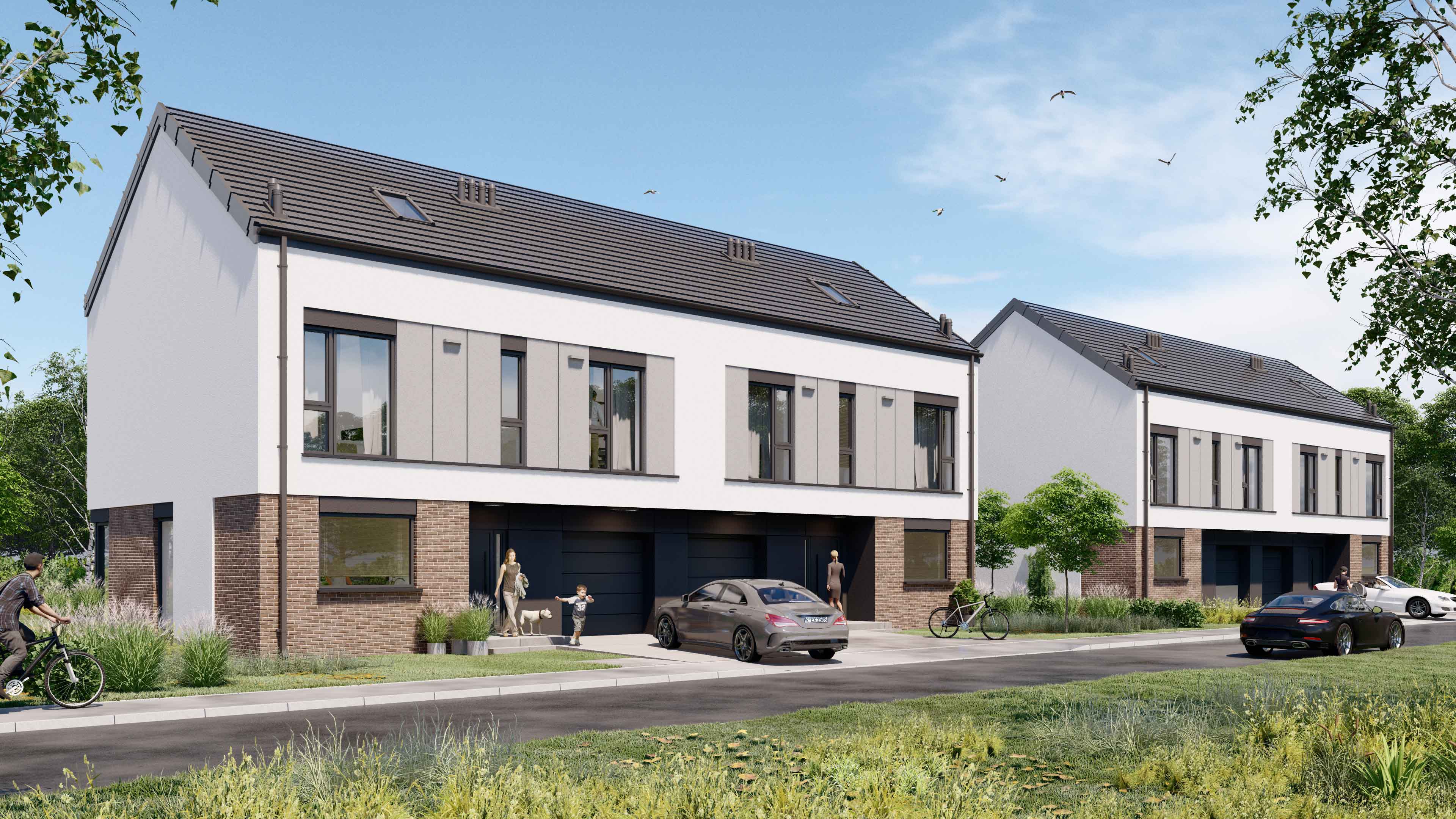 Nowa inwestycja — cztery nowoczesne domy jednorodzinne z garażami i ogródkami